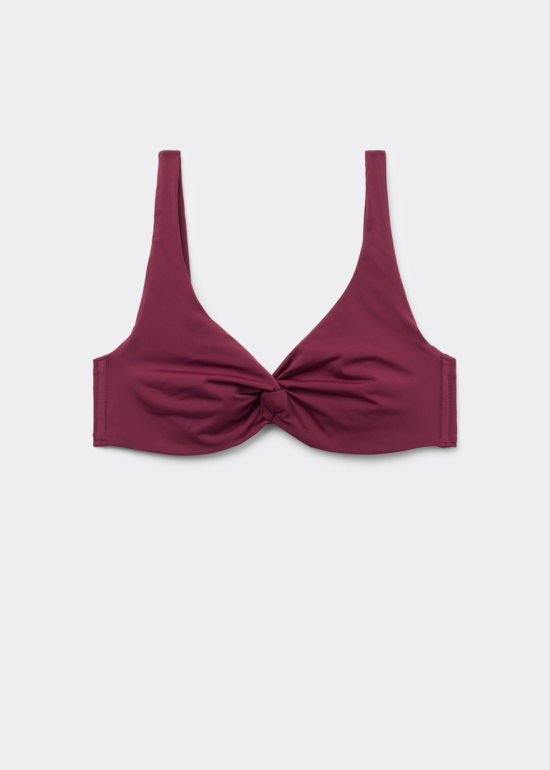 The balconette swimsuit top combines timeless elegance with thoughtful design, making it a standout knot-front bikini. Featuring unpadded cups with underwire and a central knot detail, this top delivers a flattering shape and secure fit for larger busts. The wide, side boning, and tulle-lined cups ensure excellent support while maintaining a smooth silhouette. Crafted from ultra-soft fabric, it feels light and comfortable against the skin, perfect for all-day beach or pool wear. The adjustable and removable straps can be styled multiple ways—crossed at the back, tied behind the neck, or hooked onto the band at different points to suit your physique. A sturdy back closure with two hook-and-eye adjusters guarantees a custom fit and added underband support. Whether you’re lounging or swimming, this knot detail bikini blends sophisticated style with reliable structure, making it a versatile choice for your swimwear collection.