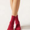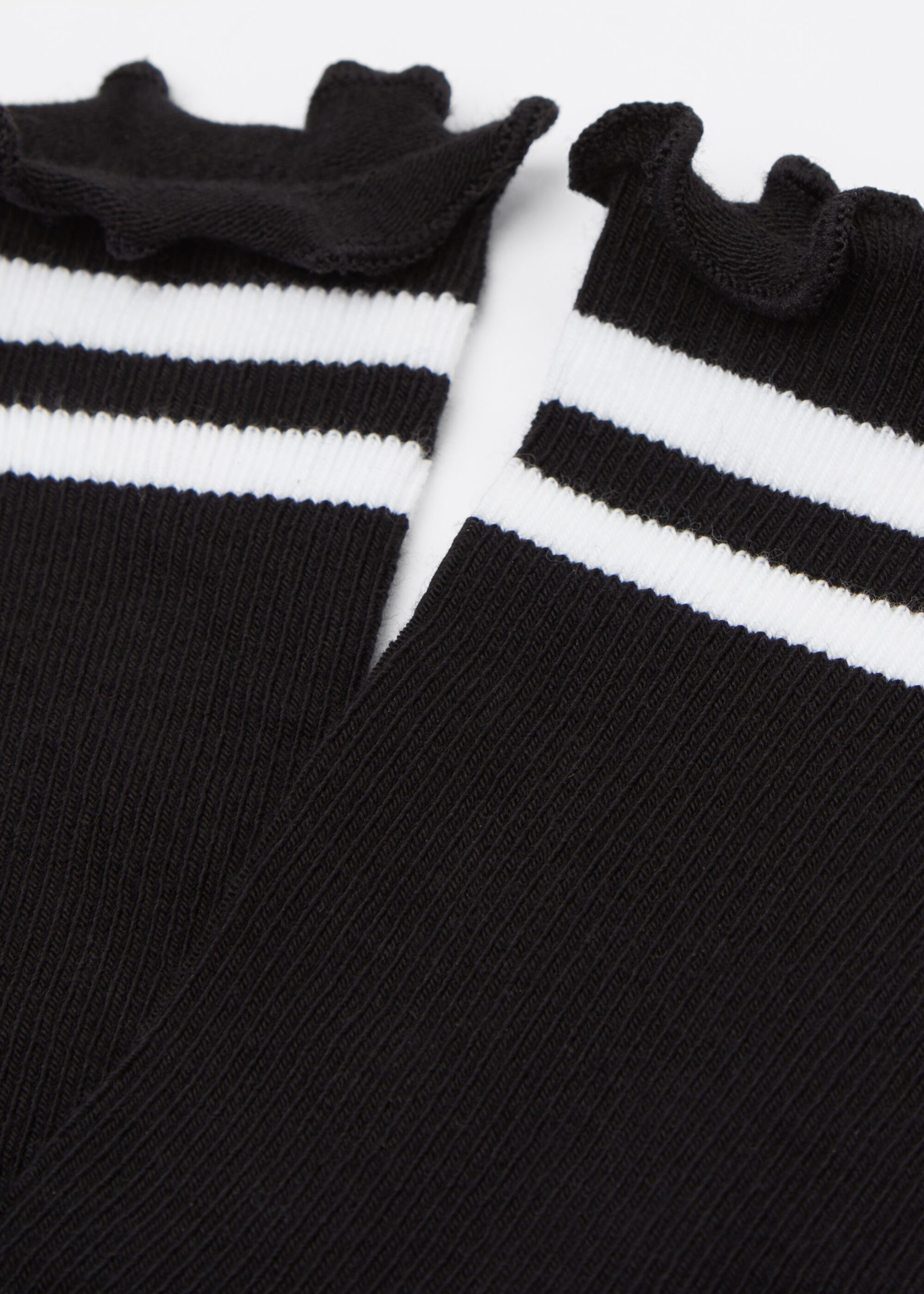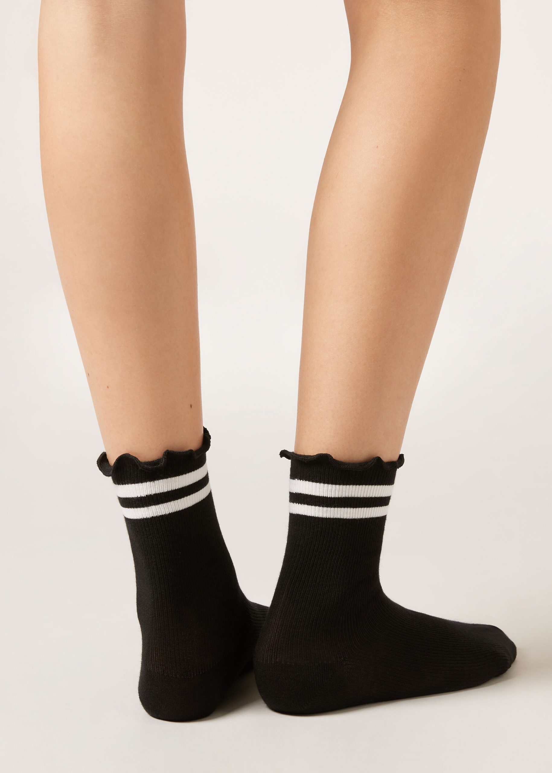 Women’s short socks in soft cotton. The micro-ribbing offers a refined touch and right amount of stretch. The romantic edge and contrasting color bands add a subtle and feminine originality.