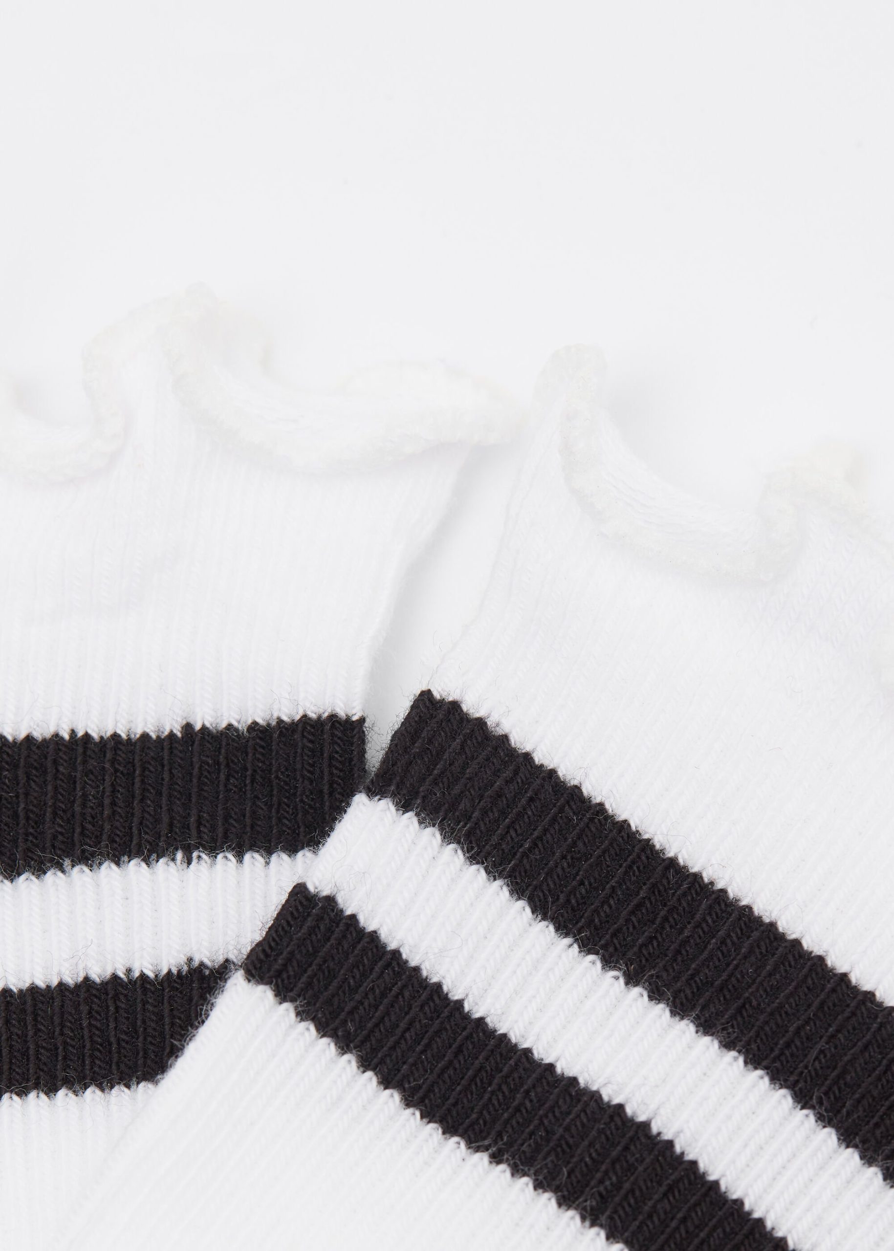 Women’s short socks in soft cotton. The micro-ribbing offers a refined touch and right amount of stretch. The romantic edge and contrasting color bands add a subtle and feminine originality.