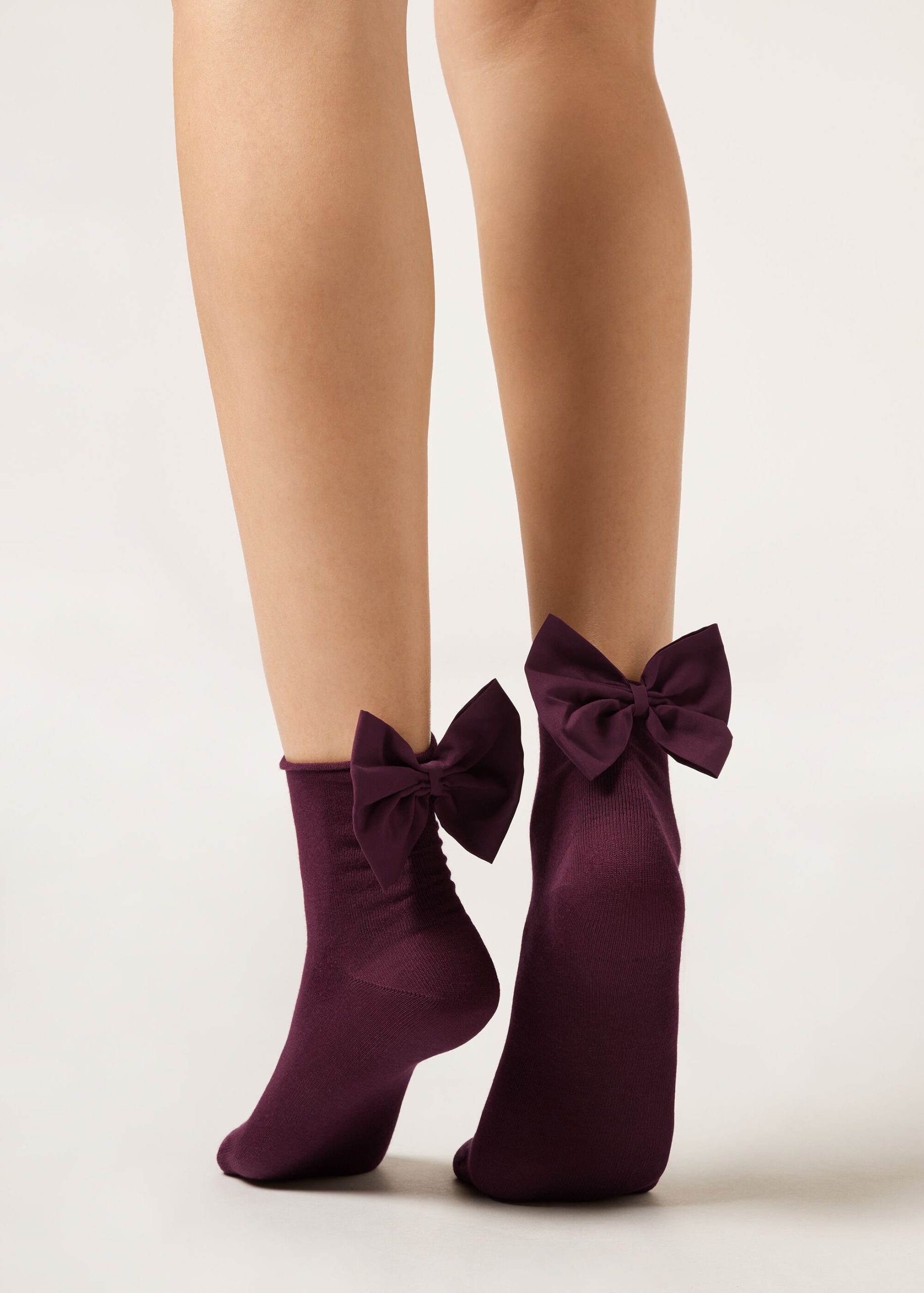 Women’s short cotton socks with comfort edge and decorative maxi bow at back.