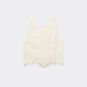 Precious sleeveless crop top crocheted with a sophisticated floral pattern, perfect to wear as a cover-up or paired with the pants 0BDP168 to create a chic outfit. Light and versatile, it adds a touch of elegance and originality, ideal for creating unique and fashionable looks.