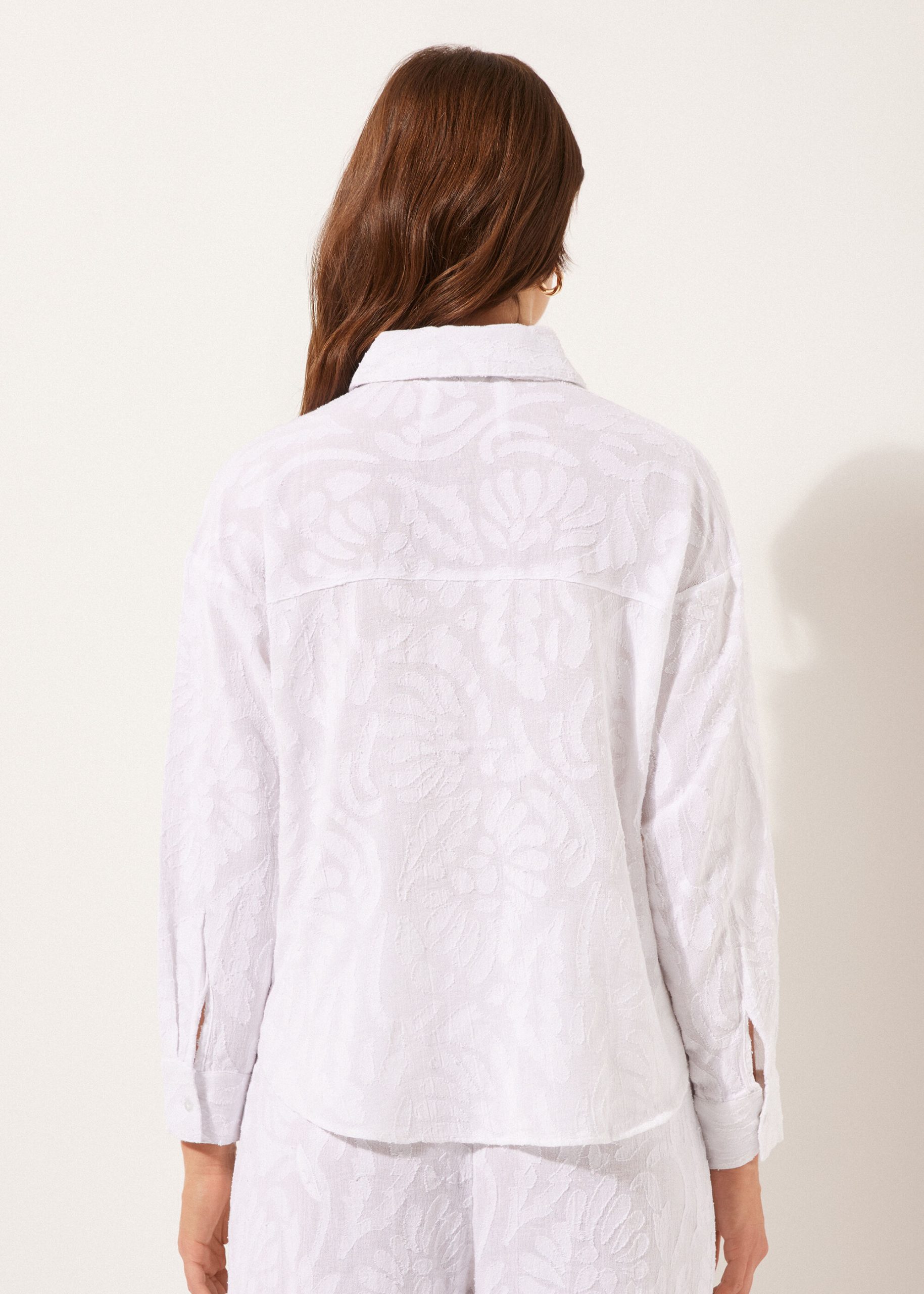 Cotton shirt with a refined embroidered effect, featuring long sleeves, classic collar and button fastening. The elegant embroidery adds a touch of style and elegance, ideal for a sophisticated, timeless look. Perfect to pair with the pants 0BDP172 to create a very elegant outfit.