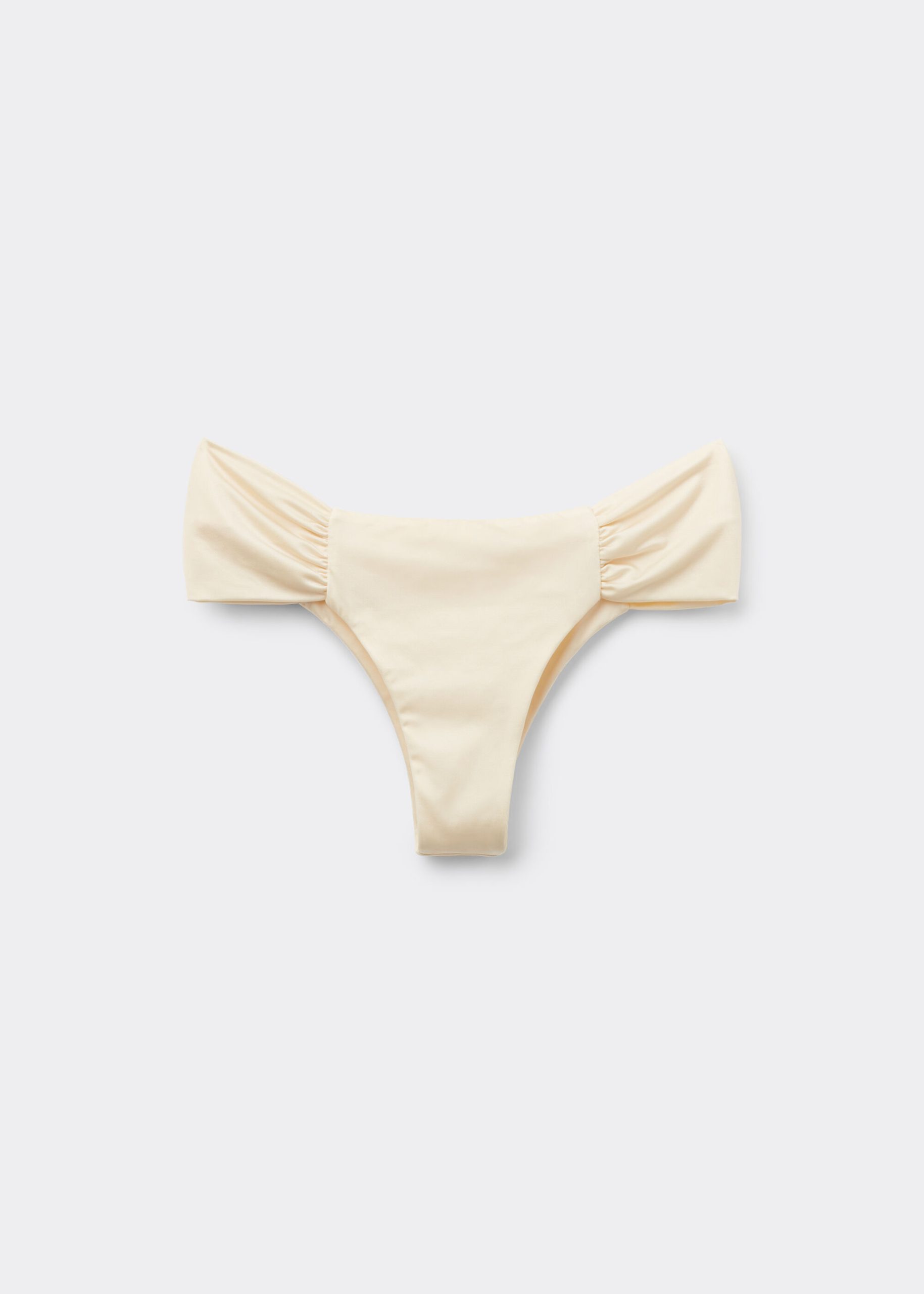 Brazilian bikini bottom with draped fabric at the sides that allow the height to be adjusted. The style features a particularly soft, shiny, silky-effect fabric. Fully lined and with invisible seams.