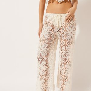 Precious palazzo pants crocheted with a sophisticated floral pattern and with a drawstring at the waist. The supple design elegantly exalts the silhouette, while the unique pattern adds a touch of originality and style. Perfect to wear as a cover-up or as part of a summer outfit paired with the top 0BDA167.