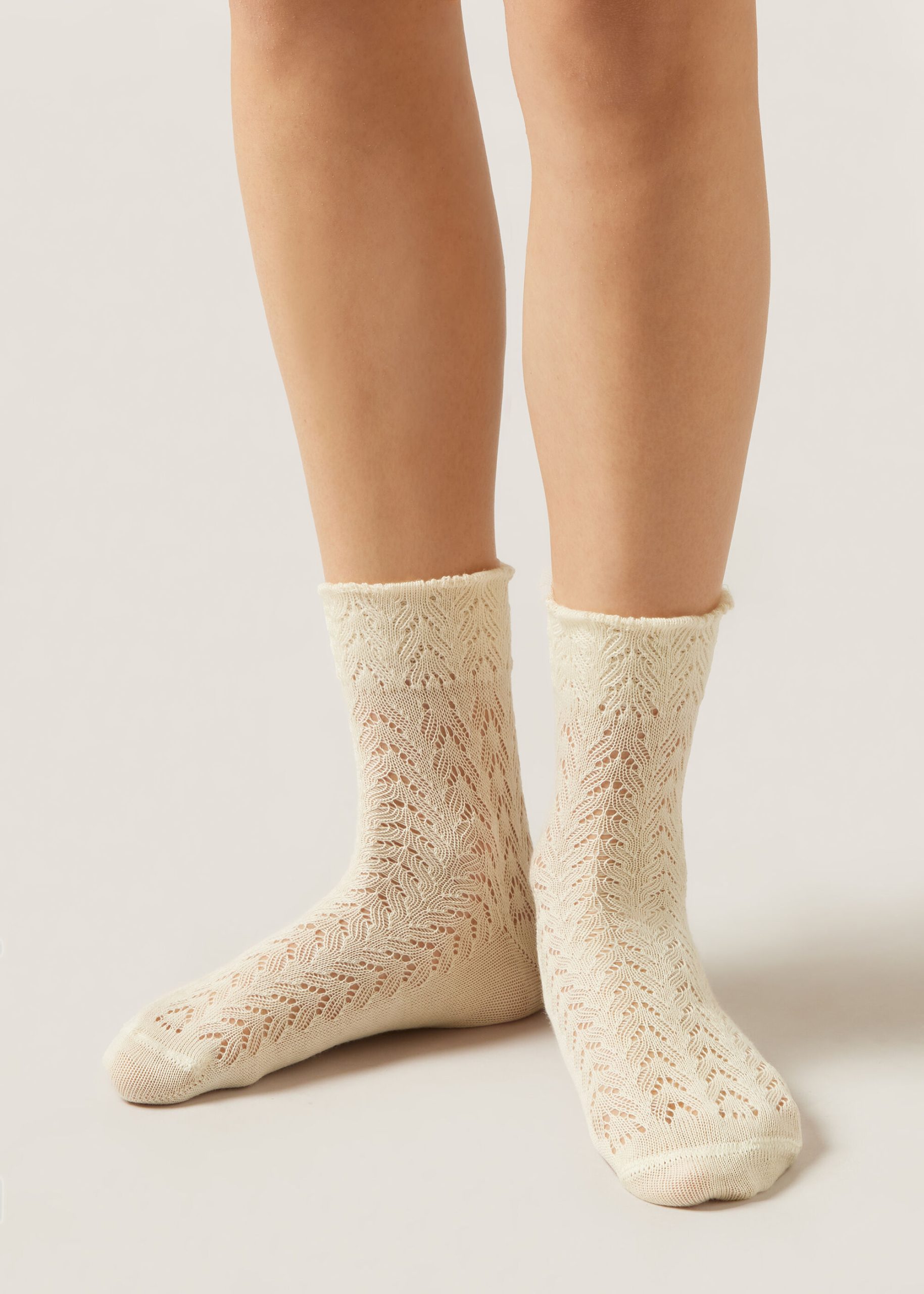Women’s short socks in romantic and delicate soft cotton. The fretwork creates an elegant and breathable pattern, combining comfort and distinctive style.