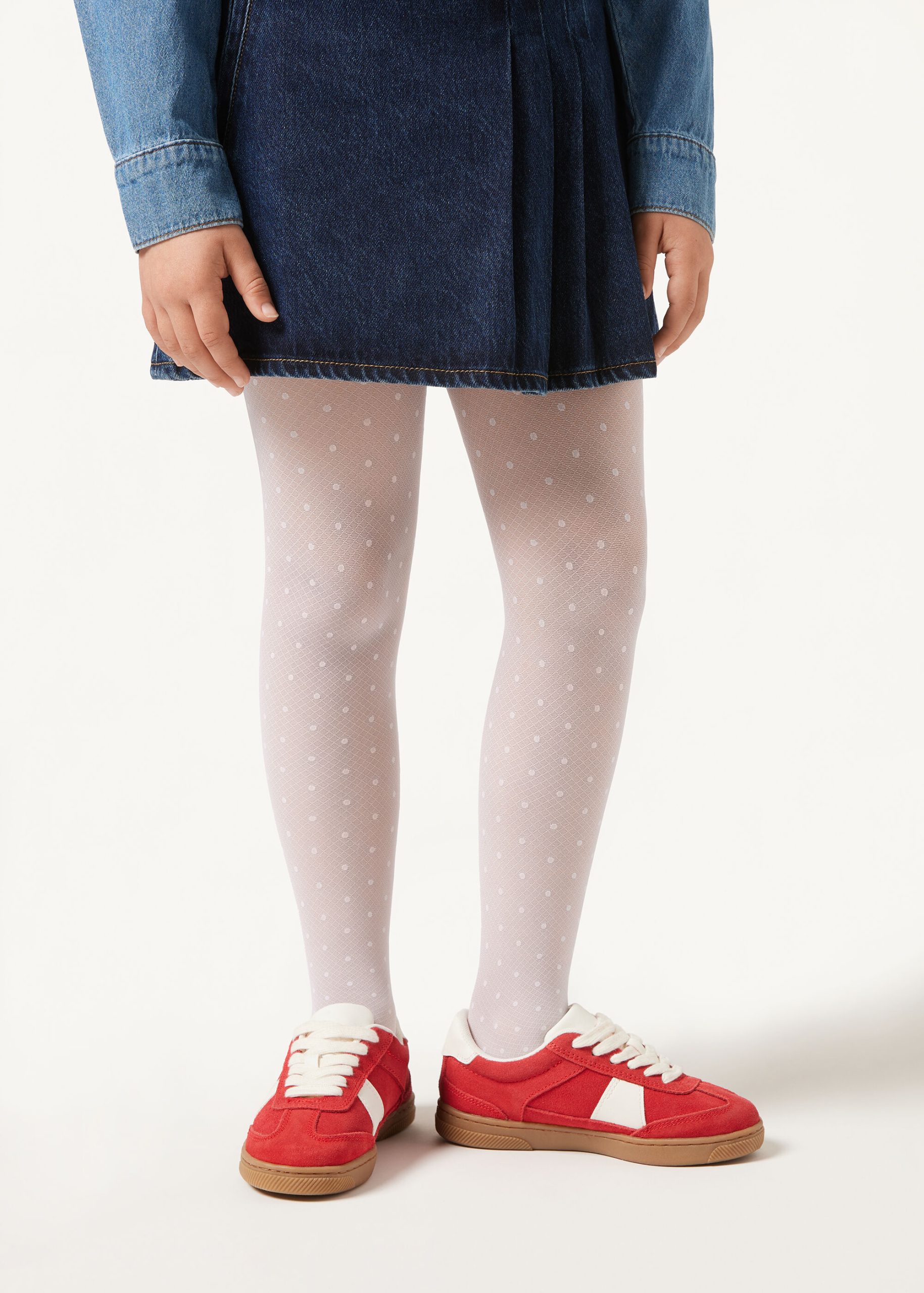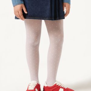 Girls’ 30 denier tulle tights featuring a fun and all over dot motif.