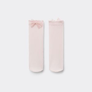 Girls’ 30 denier microfiber short socks with elegant tulle bow with glitter appliqué, trimmed with a scalloped edge.