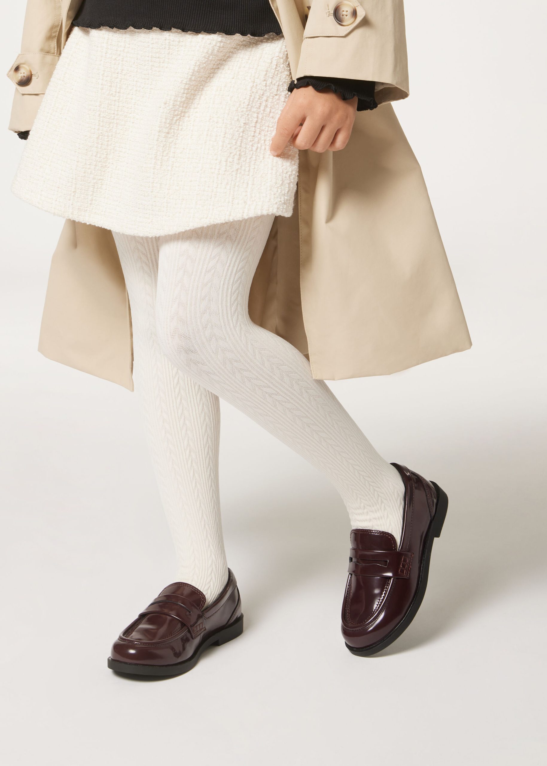 Soft and warm girls thermal tights, with an elegant cable knit motif. Perfect for any occasion, for a fashionable, comfortable look even on the coldest days.