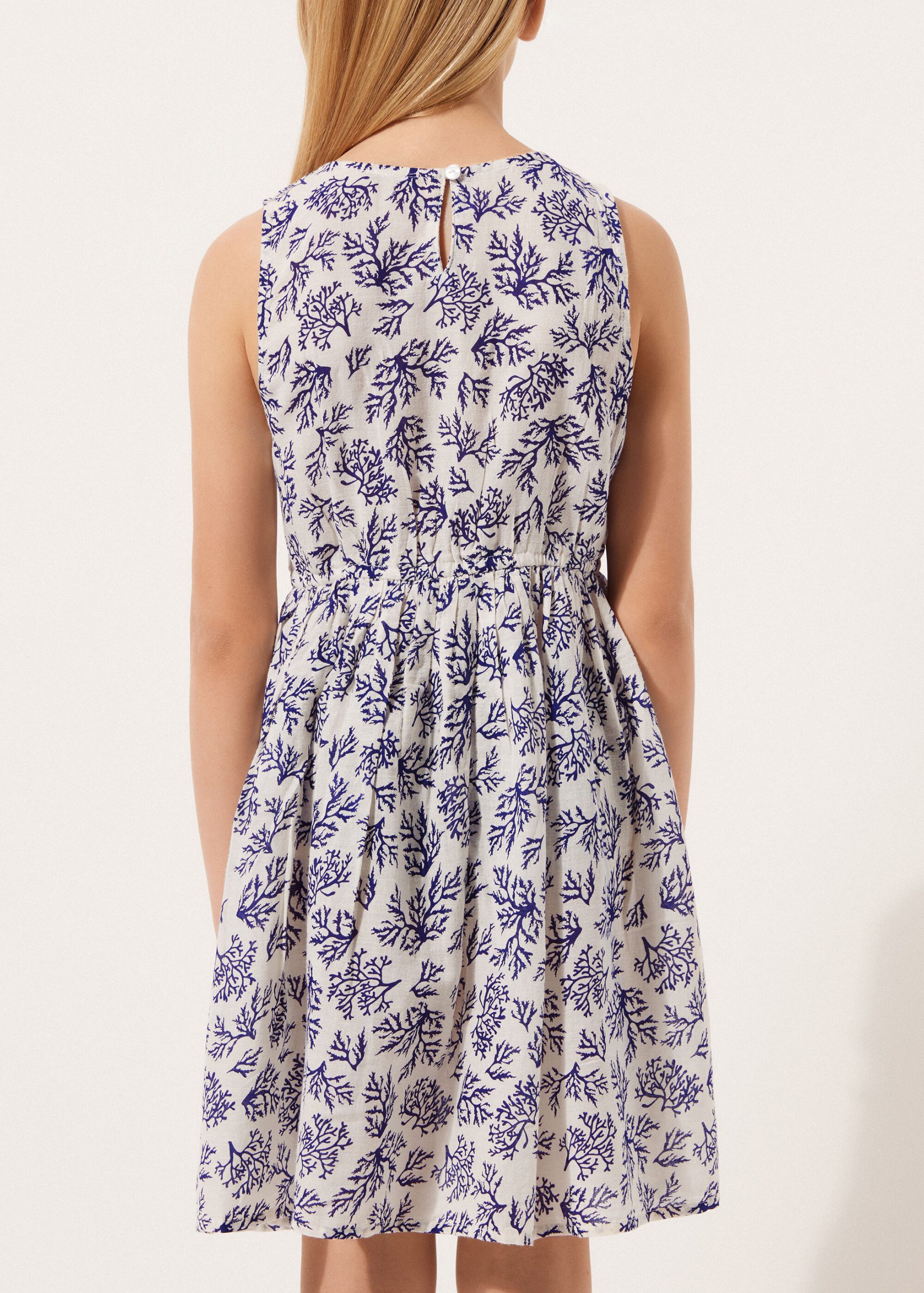 Girls’ dress in soft cotton, perfect as a cover-up. Lightweight and cool, it features a delicate colorful pattern that adds a touch of sweetness. Ideal for days at the beach or in the pool, it offers comfort and freedom of movement.