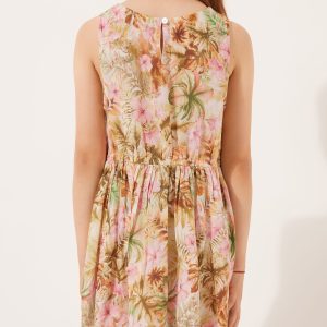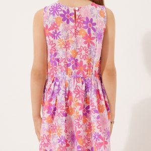 Girls’ dress in soft cotton, perfect as a cover-up. Lightweight and cool, it features a delicate colorful pattern that adds a touch of sweetness. Ideal for days at the beach or in the pool, it offers comfort and freedom of movement.
