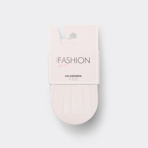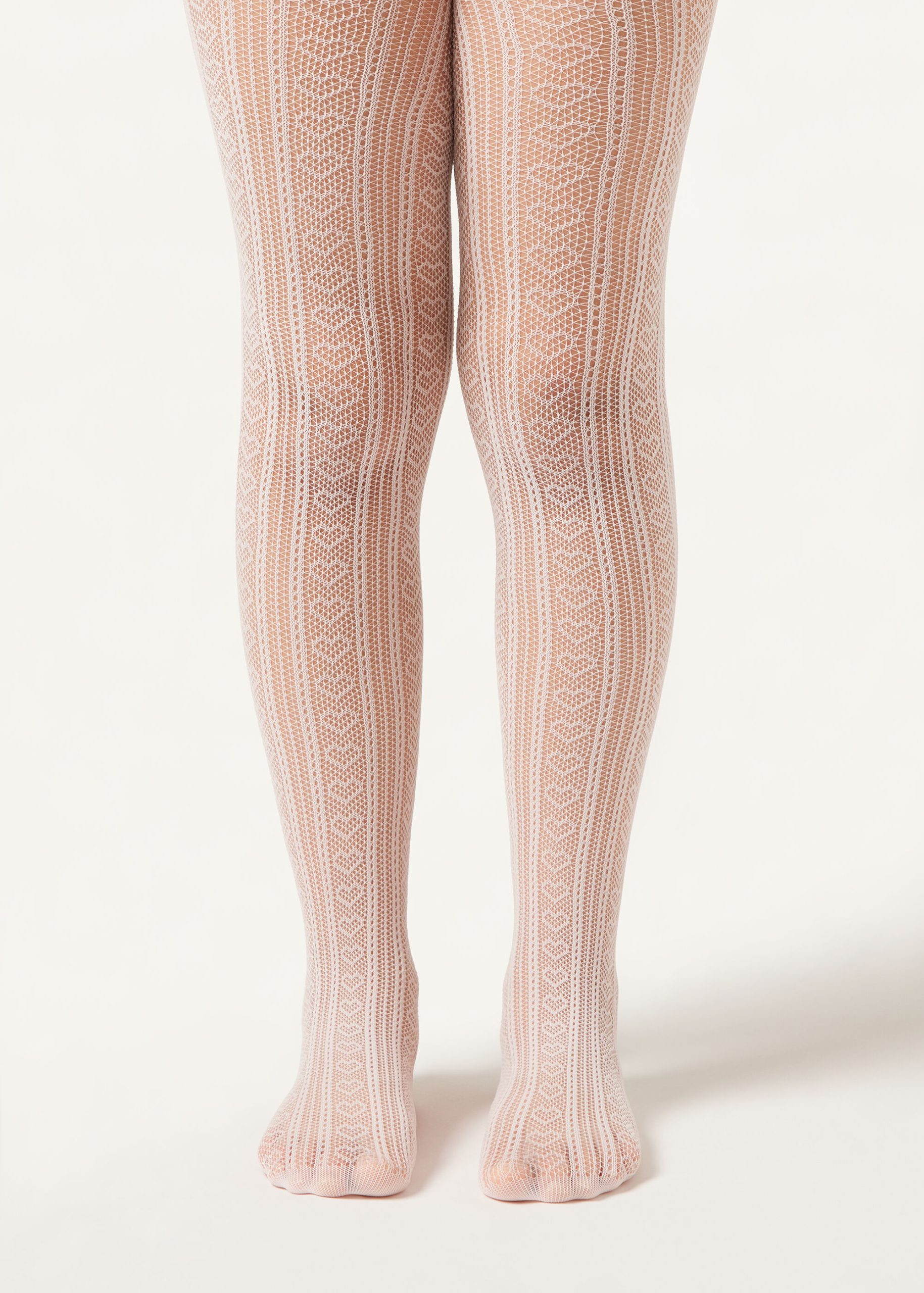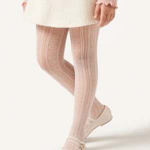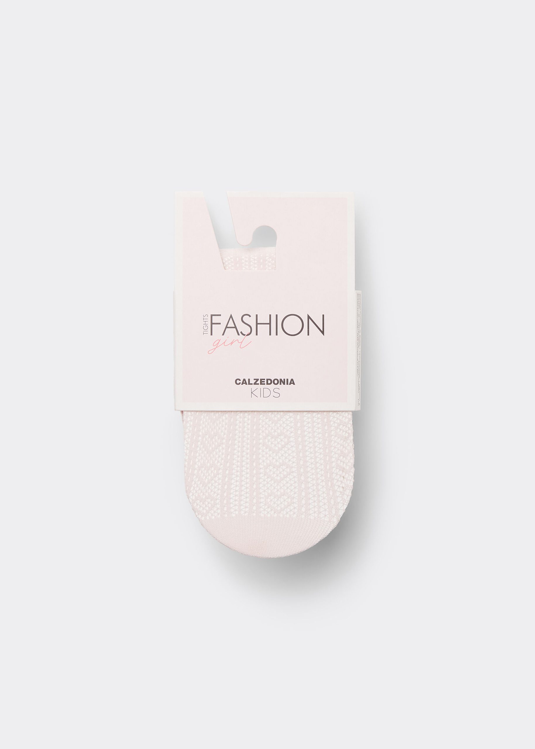 Girls’ fishnet tights featuring a geometric motif with hearts.