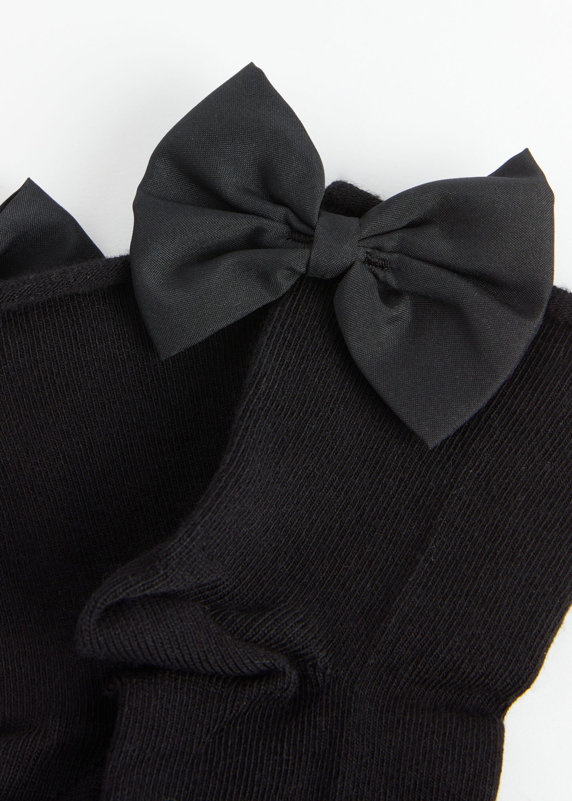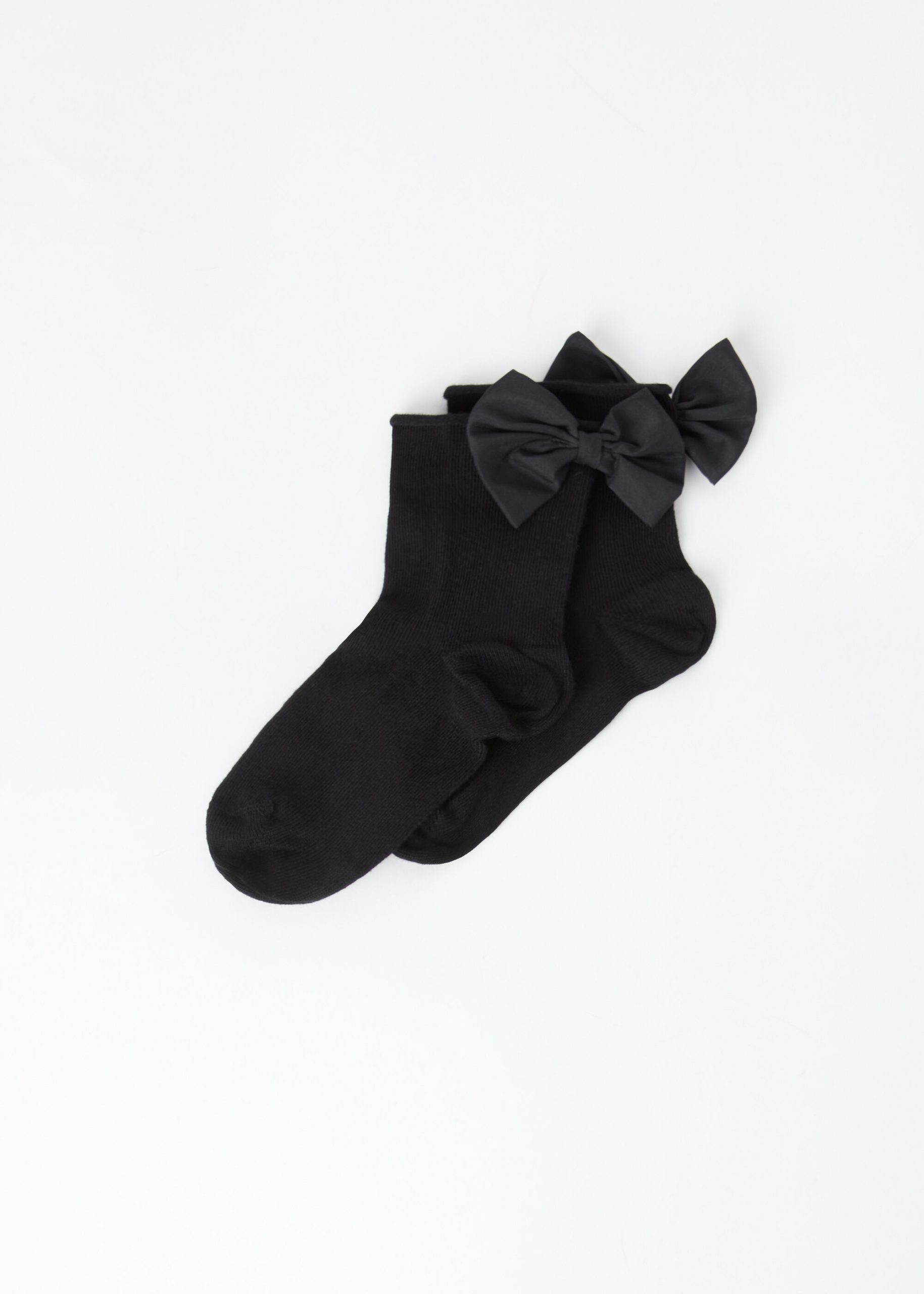 Girls’ soft cotton short socks embellished with a sweet bow on the back. Featuring a comfortable border to guarantee a perfect fit and comfort. Perfect to add a touch of sweetness and femininity to the everyday wardrobe of your little girl.