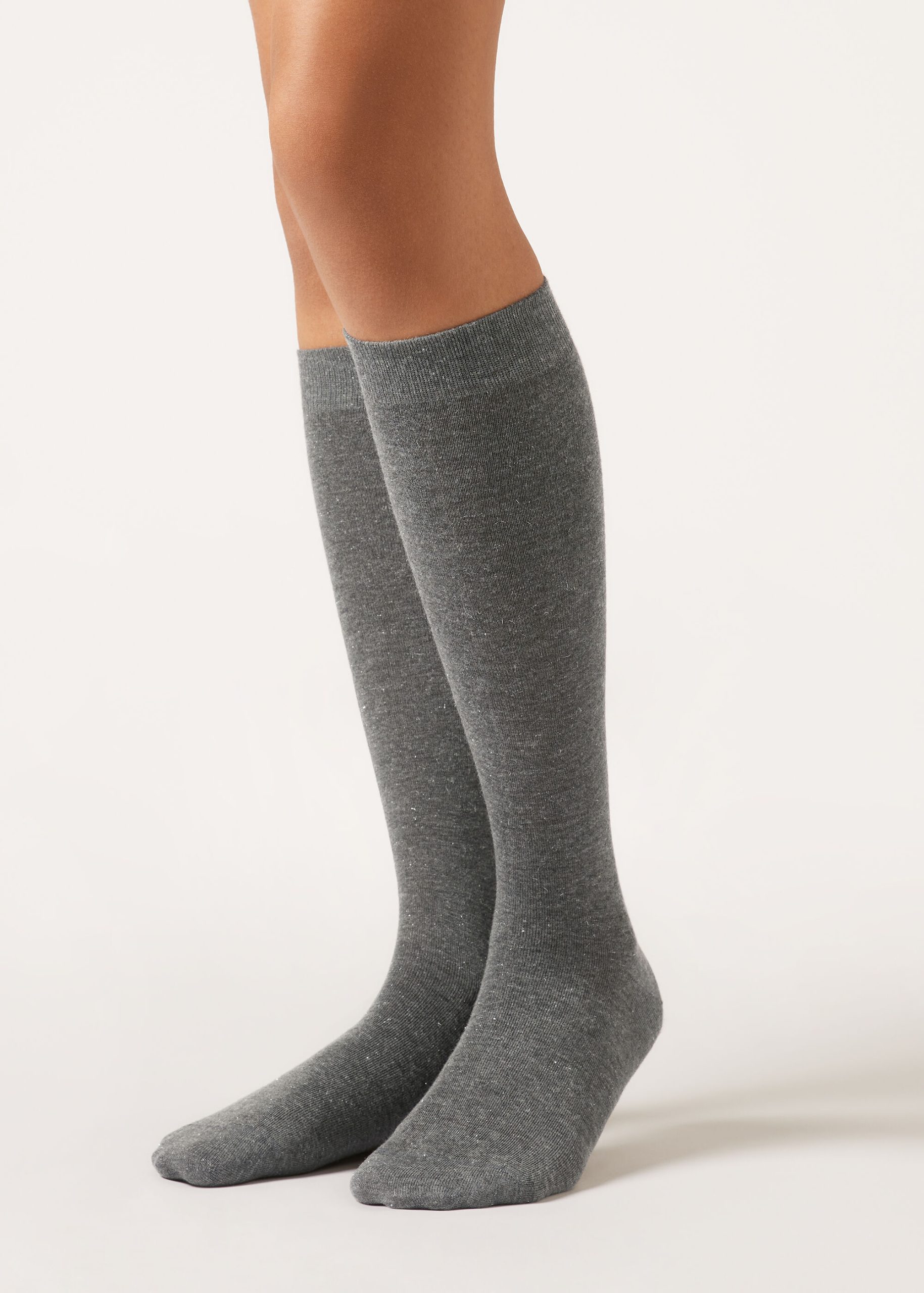 Women’s long socks with cashmere and glitter, ideal for glamorous elegance and unrivalled comfort. These socks offer a feeling of luxury and warmth, embellished with a touch of sparkle, ideal for facing the coldest days in style.