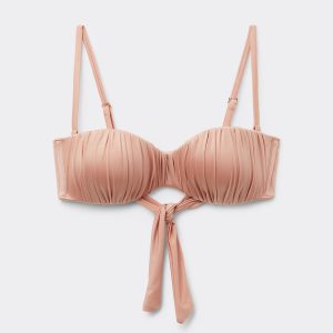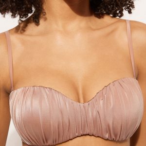 Graduated Padded Bandeau Swimsuit Top Shiny Satin
