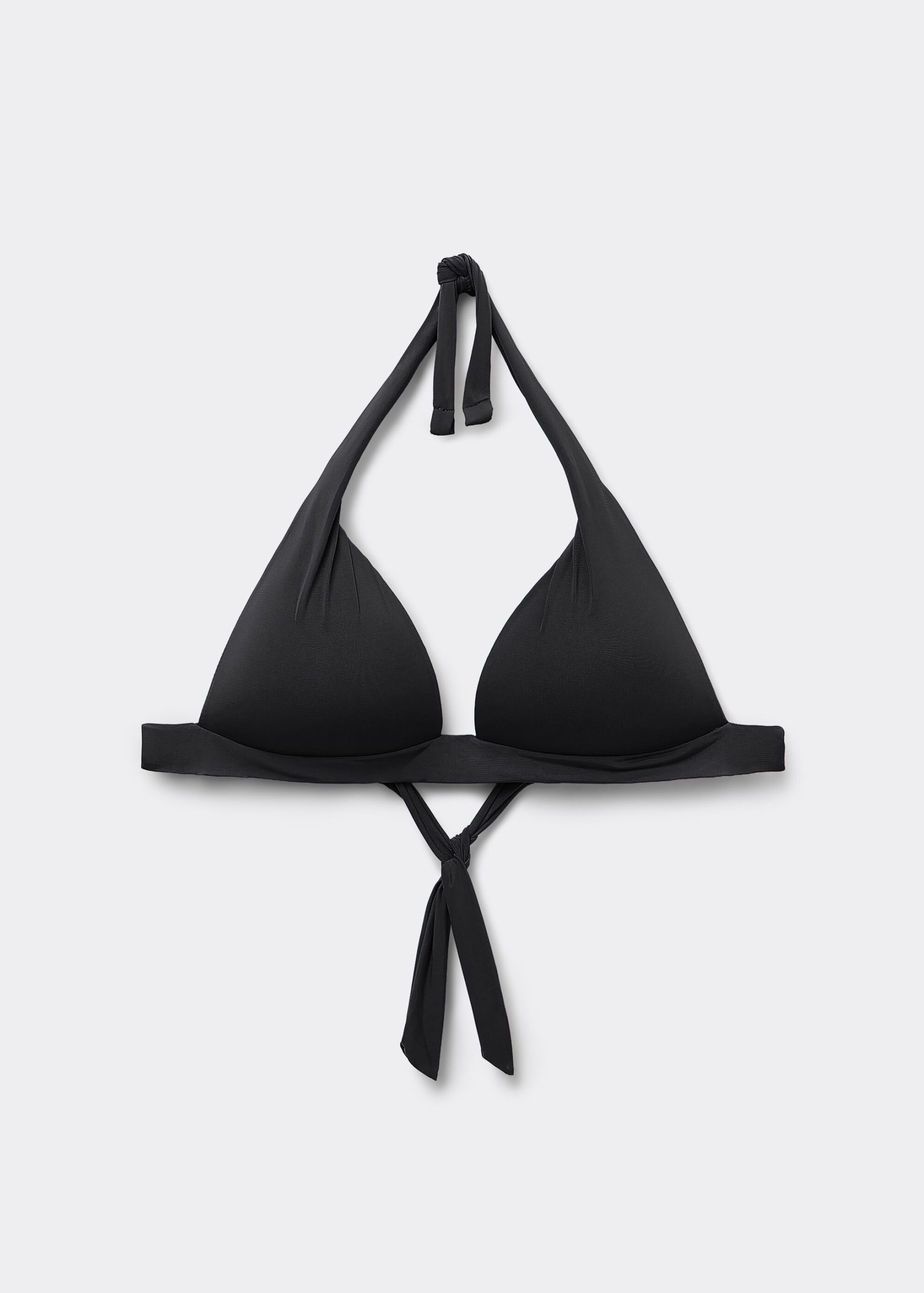 Our Indonesia halter neck triangle bikini top offers the perfect combination of style and comfort. Designed with graduated padded cups, this top adds natural-looking volume to enhance and shape the bust for a flattering silhouette. Made from exceptionally soft fabric, the tie-back bikini top feels light and breathable on the skin, making it ideal for long days by the pool or at the beach. Graduated padding creates a push-up effect, enhancing and lifting the bust for a flattering, sculpted silhouette. The adjustable shoulder straps feature eyelets at the ends, allowing for versatile styling; hook them onto the back band for a classic look or tie them behind the neck for a chic halter effect. With a tie back bikini top closure, this design ensures a secure and adjustable fit, adapting to your shape effortlessly. Thoughtfully crafted for both sun lounging and active swimming, this bikini top combines premium materials with a stylish and versatile design, making it a standout addition to your swimwear collection.
