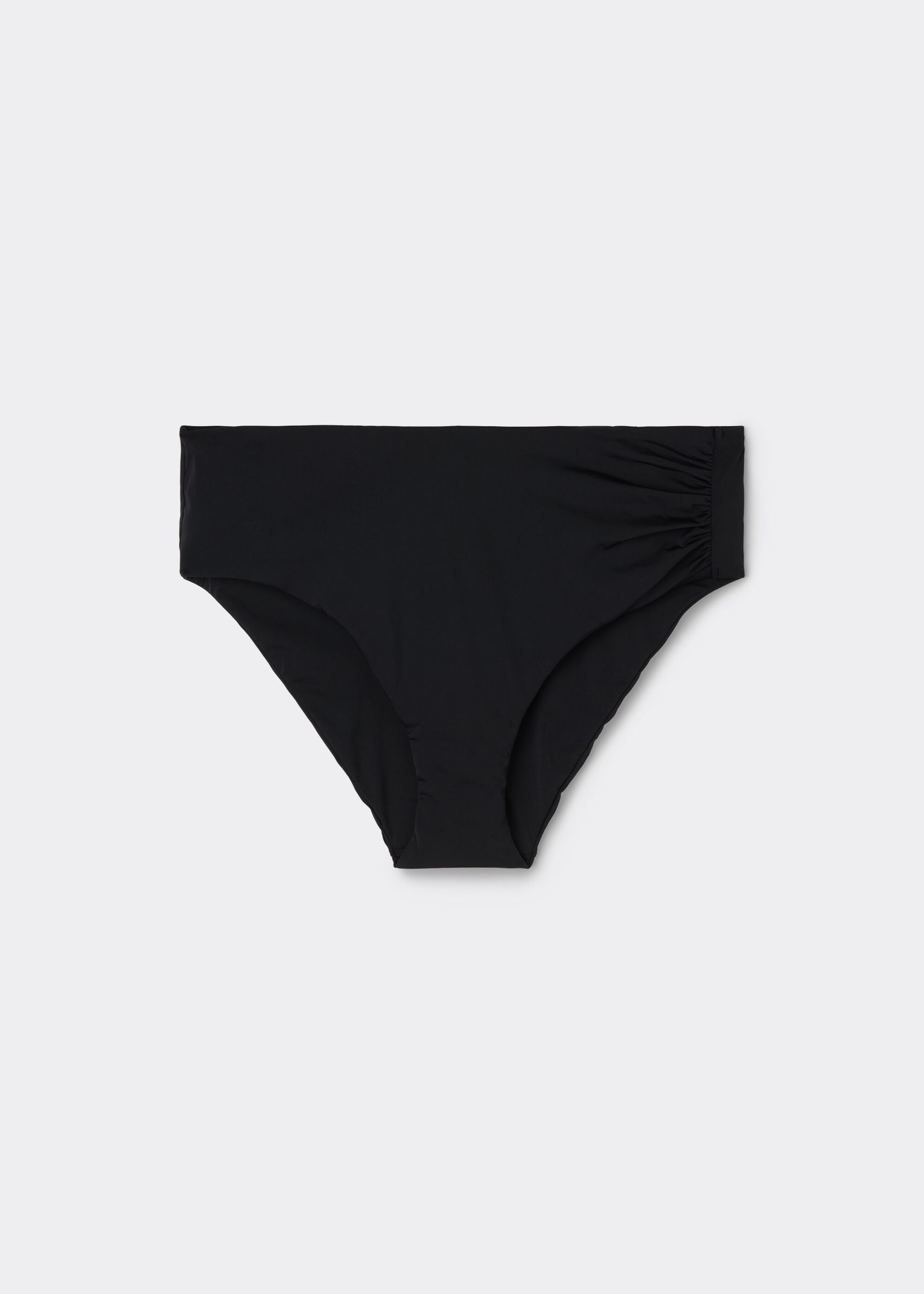 Bikini bottom with side ruching and a slightly high waist with a shaping effect on the abdomen, ensured by a special tulle at the front. The extremely soft fabric makes it pleasant to wear, offering a light and comfortable feel on the skin. Fully lined with invisible seams.