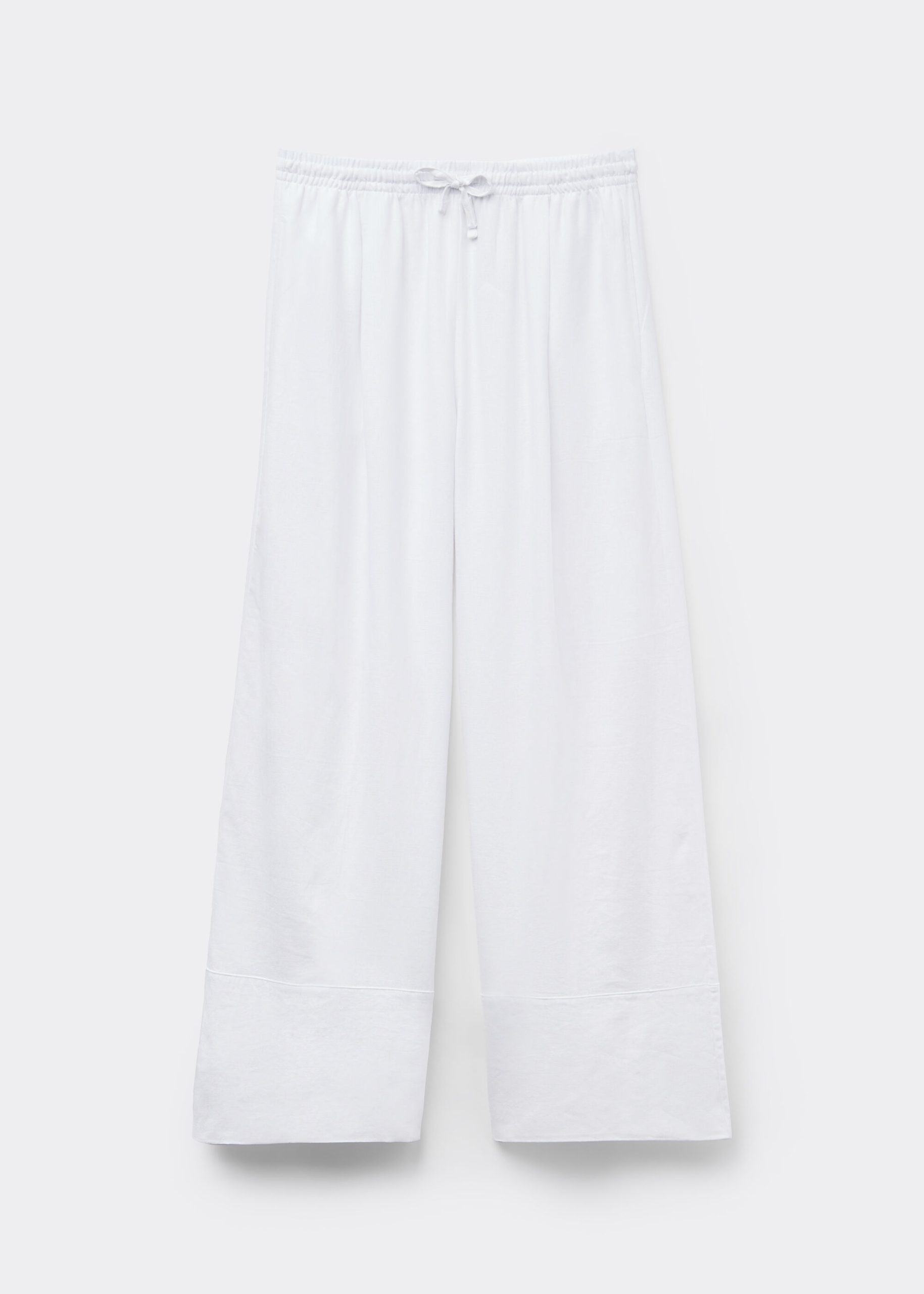 Palazzo pants in linen and viscose, perfect for those who love natural fibers. With a relaxed and comfortable fit, these pants offer a fluid and modern design, perfect for pairing with the 0BDA143 shirt.
