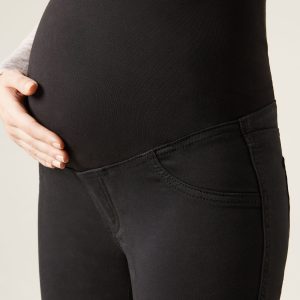 Maternity jeans in stretch denim with soft elastic cotton band, designed to accompany the months of the abdomen’s gradual development during pregnancy and ensure an optimal fit on the belly. False front pockets and actual back pockets. Ideal from the 4th/5th month.