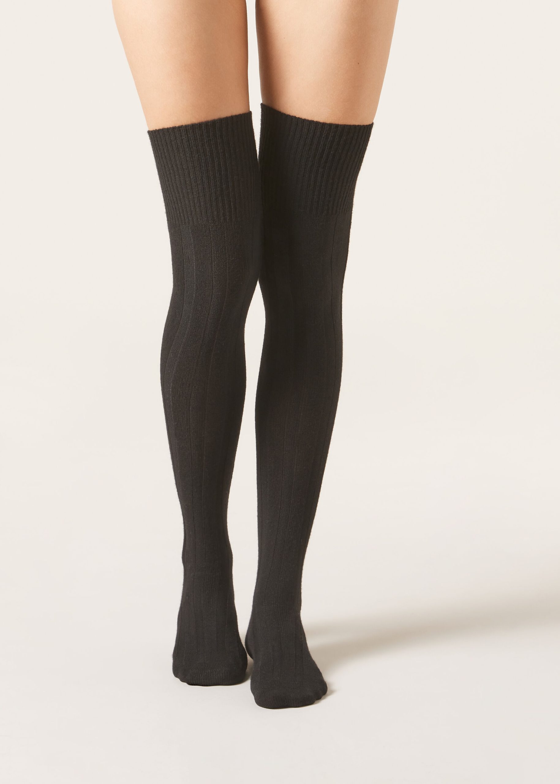 Women’s cashmere blend over-the-knee socks with an elegant pattern, they offer luxurious comfort and lightness. Soft and warm, they are perfect for an elegant and cozy look, ideal for winter.