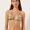 Push-up underwire bikini top with especially soft, graduated padded cups. The style features a sophisticated dark brown animal pattern embellished with removable ties that attach at the center of the bust, providing a touch of modernity and fashion. Adjustable shoulder straps and back hook closure with two adjusters.
