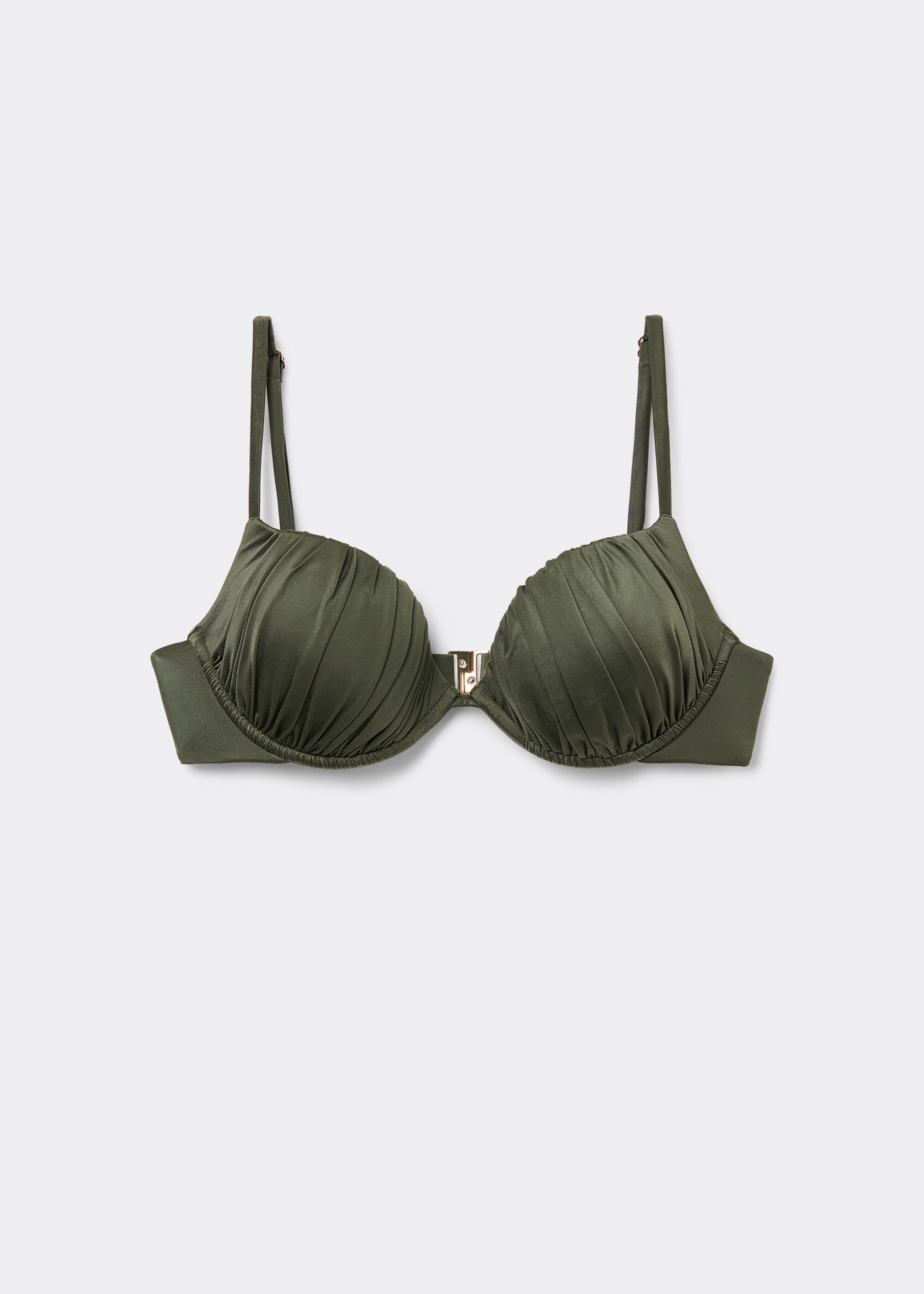 Push-up bikini top with lightly padded cups and underwire to guarantee support and provide volume. The style features a bright fabric with a silky effect. Fixed Shoulder Straps. Rear closure with double adjustment hook.
