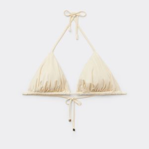 Removable Padding Triangle Swimsuit Top Shiny Satin