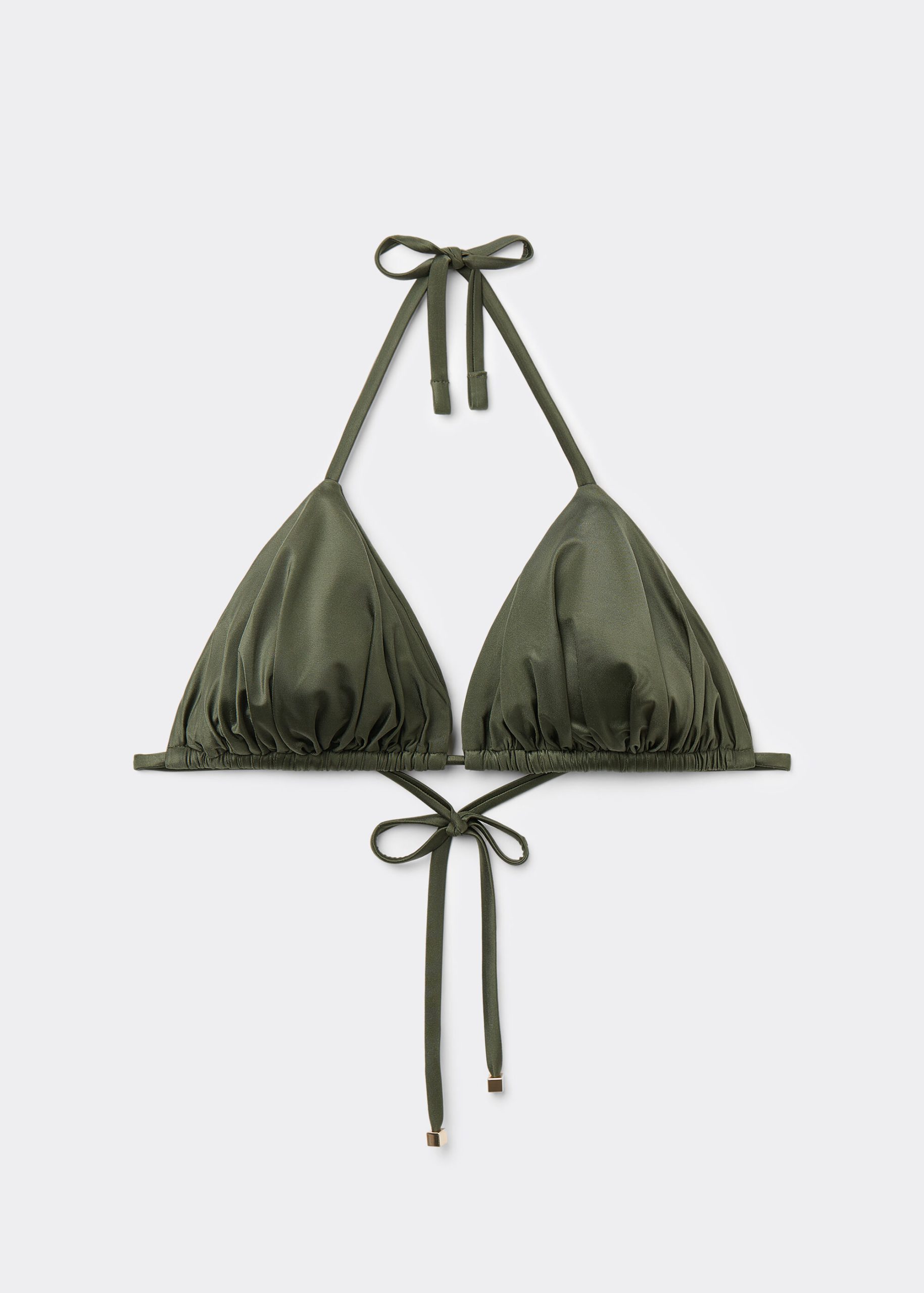 Removable Padding Triangle Swimsuit Top Shiny Satin