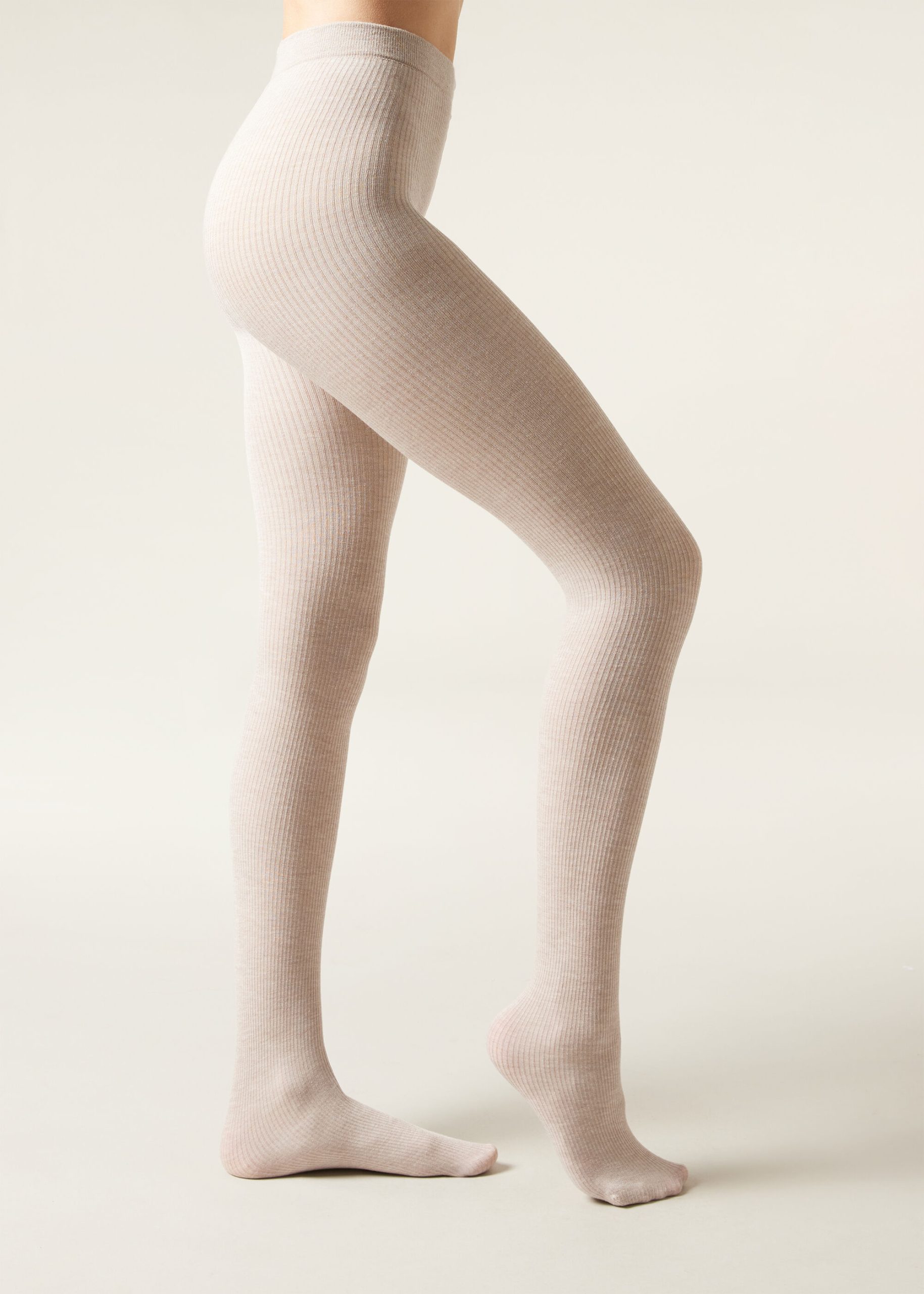 Women’s ribbed cashmere blend tights, warm and cozy. Cotton gusset.