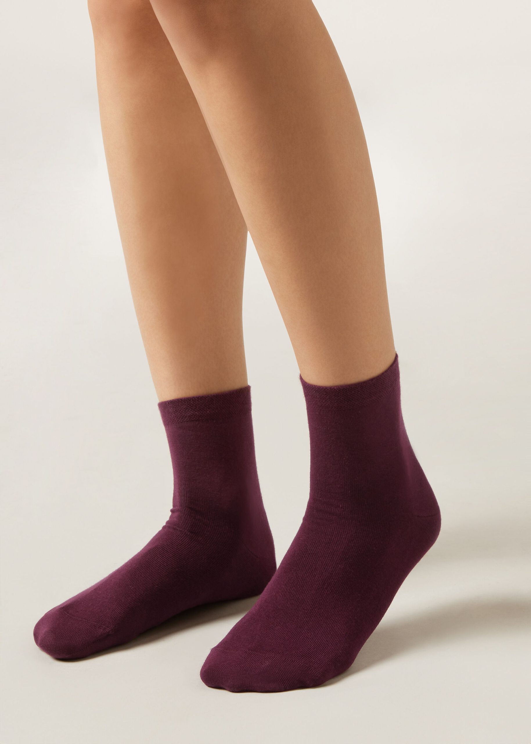 Women’s short socks in soft cotton, featuring an elegantly trimmed cuff.
