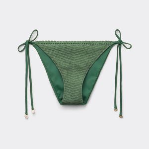 Bikini bottoms with side ties made from refined and sophisticated crochet fabric. The slightly rounded waist at the front allows for both a classic or more high-cut fit, depending on one’s physique. Fully lined with invisible seams.