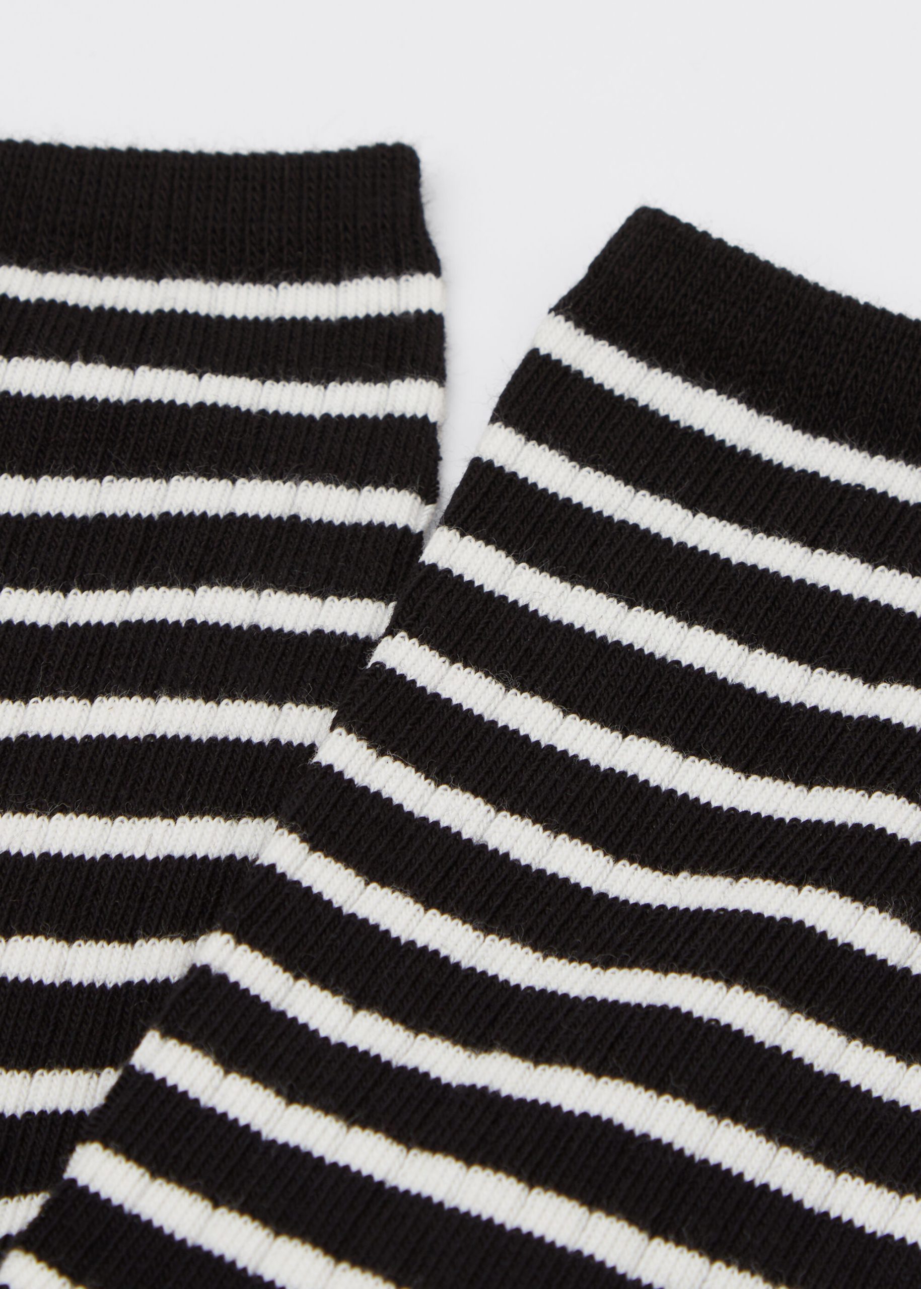 Women’s short socks in ribbed soft cotton, they offer style and comfort. The striped pattern adds a classic and versatile touch. Ideal for those looking for quality and a timeless look.