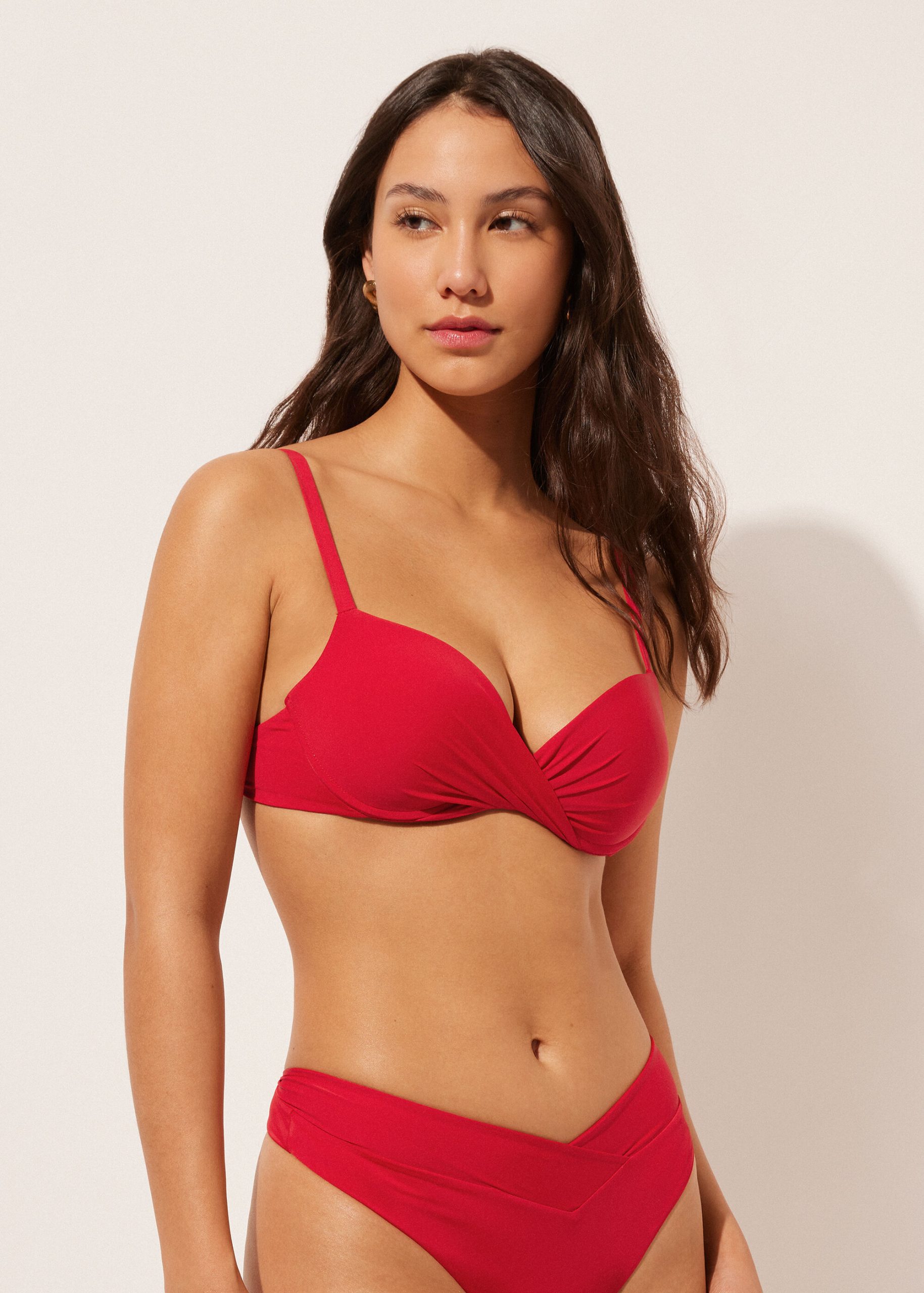 Achieve a stunning silhouette with our lifting bikini top, designed for ultimate enhancement and support. This ultra push bikini top features subtle, graduated padding and underwire to create a flattering one-size-larger effect that beautifully shapes and defines the bust. The crisscross detail accentuates the low neckline and perfectly highlights your collarbones, adding a touch of elegance to the design. Made from incredibly soft fabric, this top offers a lightweight, comfortable feel for all-day wear. For a customized fit, the adjustable push-up bikini includes removable straps that can be crossed at the back or tied behind the neck to suit your preference. The hook-and-eye back closure with an adjustable band ensures a secure and tailored fit, that is comfortable to wear and easy to put on. Whether lounging poolside or enjoying a seaside getaway, this ultra lifting bikini top blends functionality with style, making it a must-have for women seeking both comfort and a sculpted look.