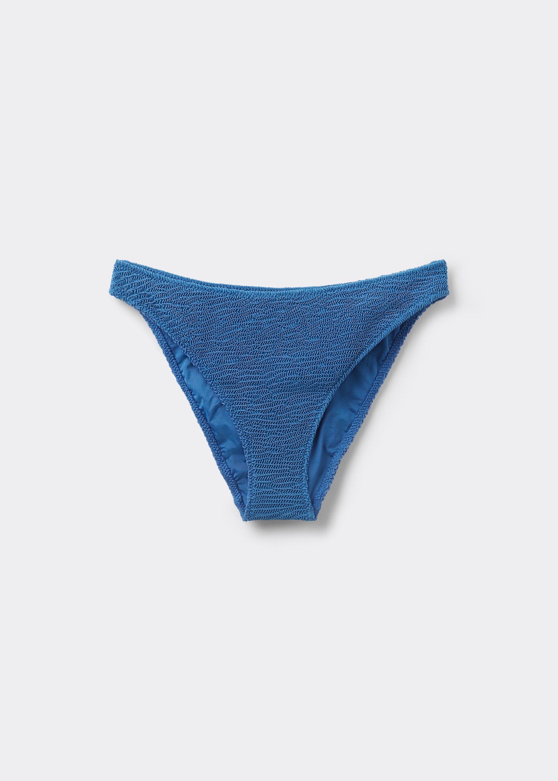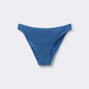 Fully lined bikini bottoms with invisible seams in a crinkle fabric with a three-dimensional effect. The slightly rounded waist allows it to be worn either as normal or with the legs higher to show off the physique.