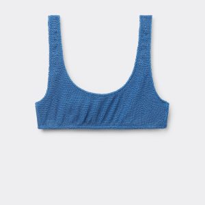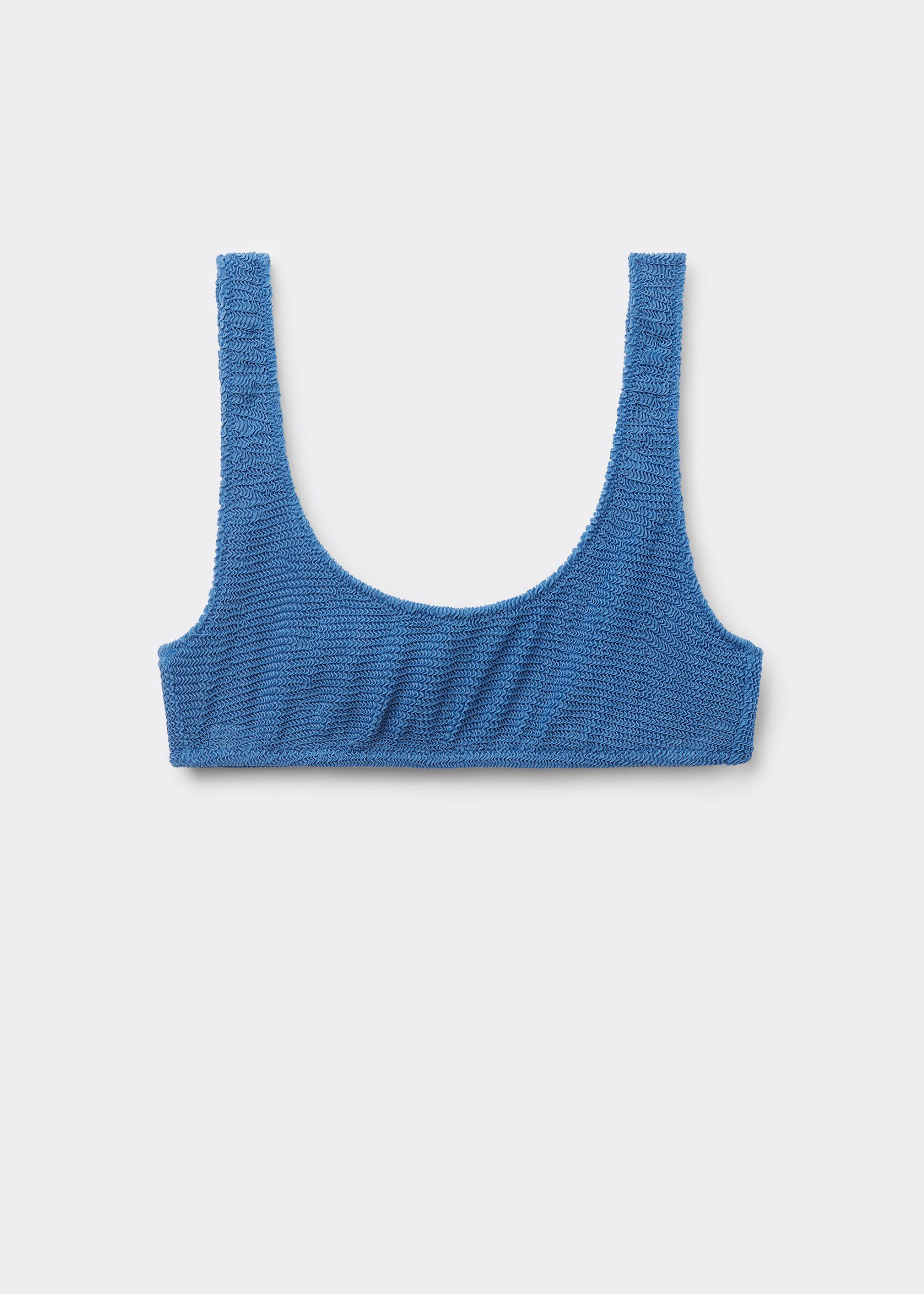 Sporty tank-style bikini top with no padding or underwire for a natural effect. The style features a crinkle fabric with a three-dimensional effect. Fixed straps and closed back.
