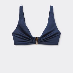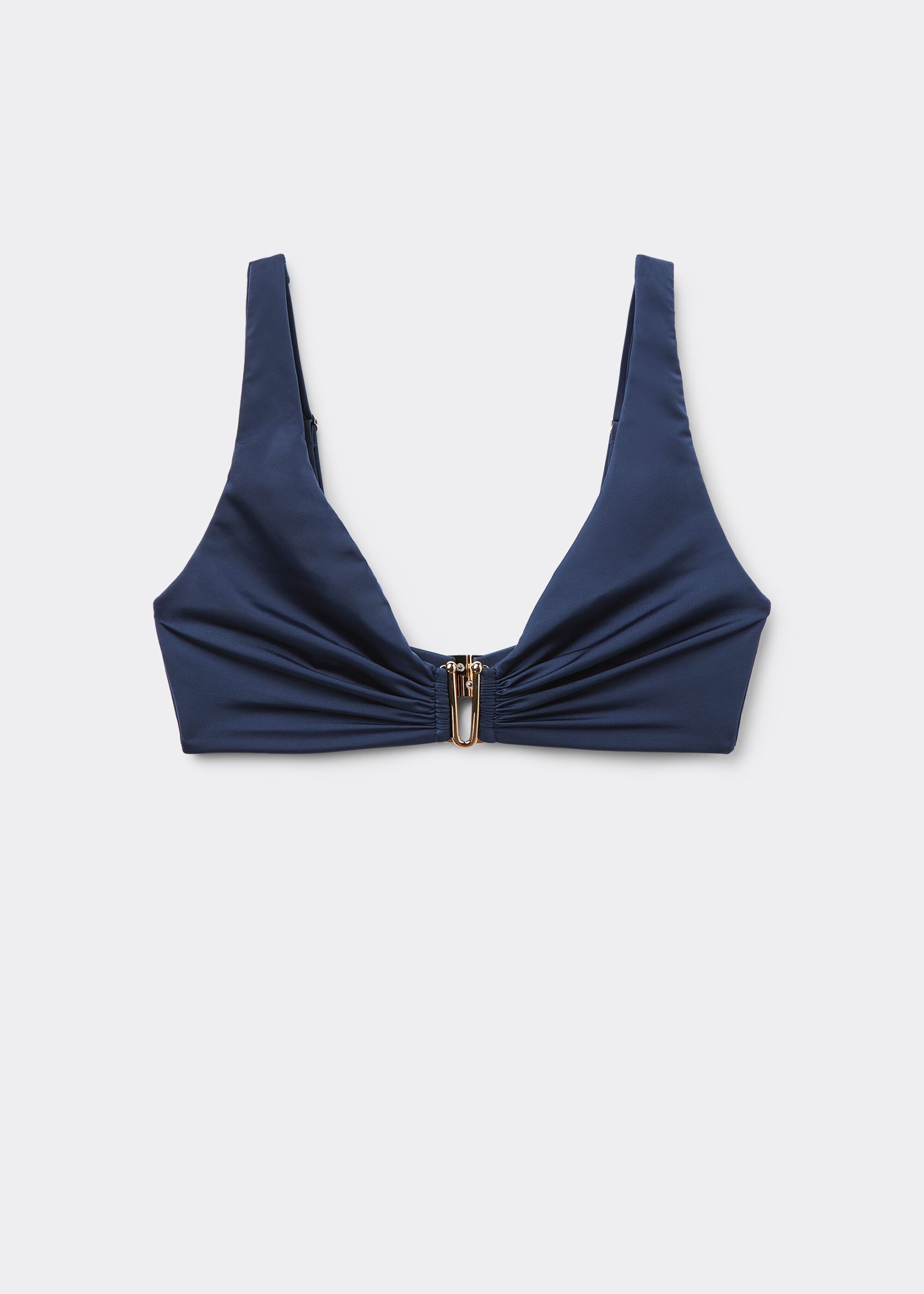 Tank-style bikini top, wireless and unpadded for a natural effect. The side boning guarantees good support. The style features bright fabric with a gold accessory at the center of the bust. Back closure with two sets of hooks.